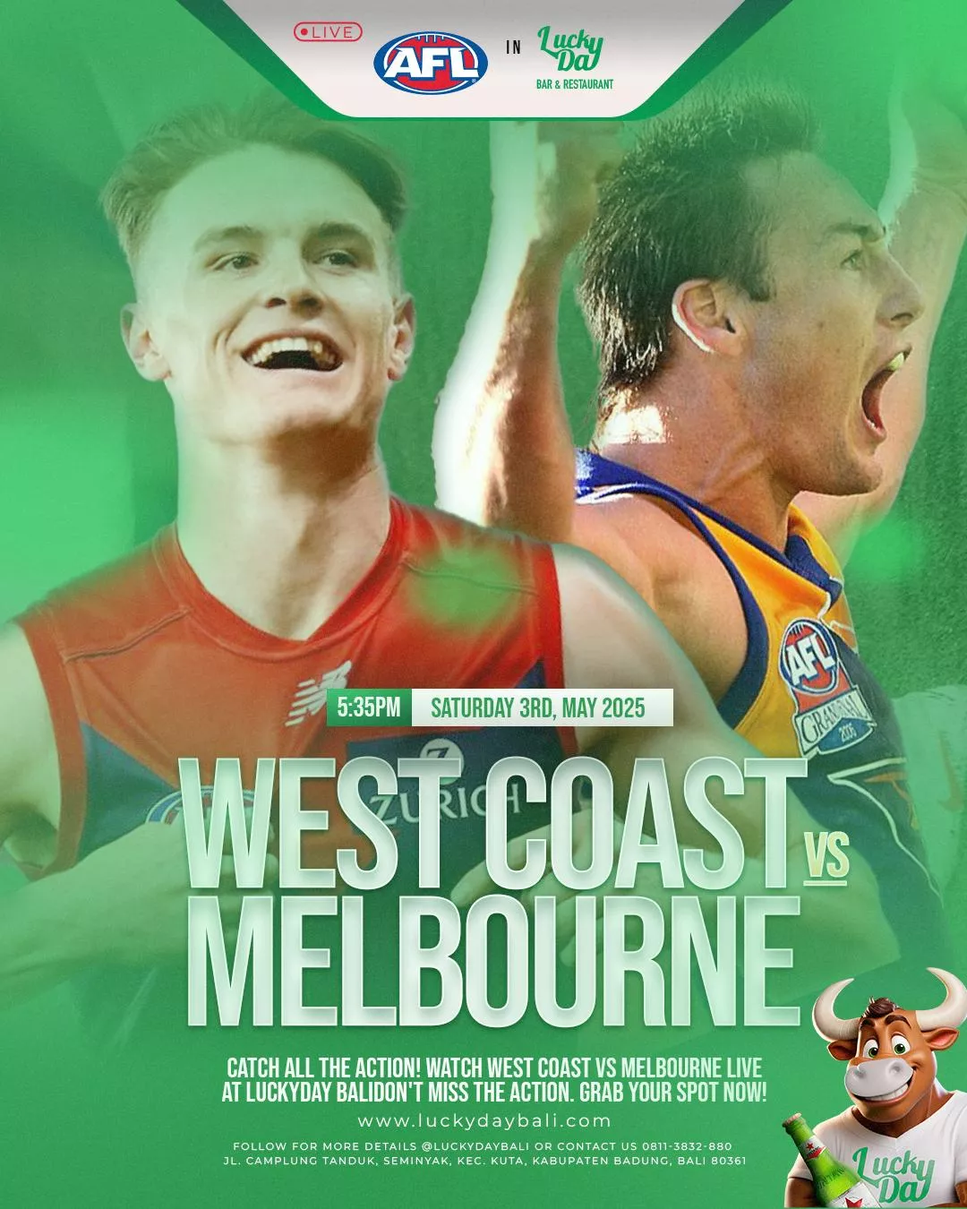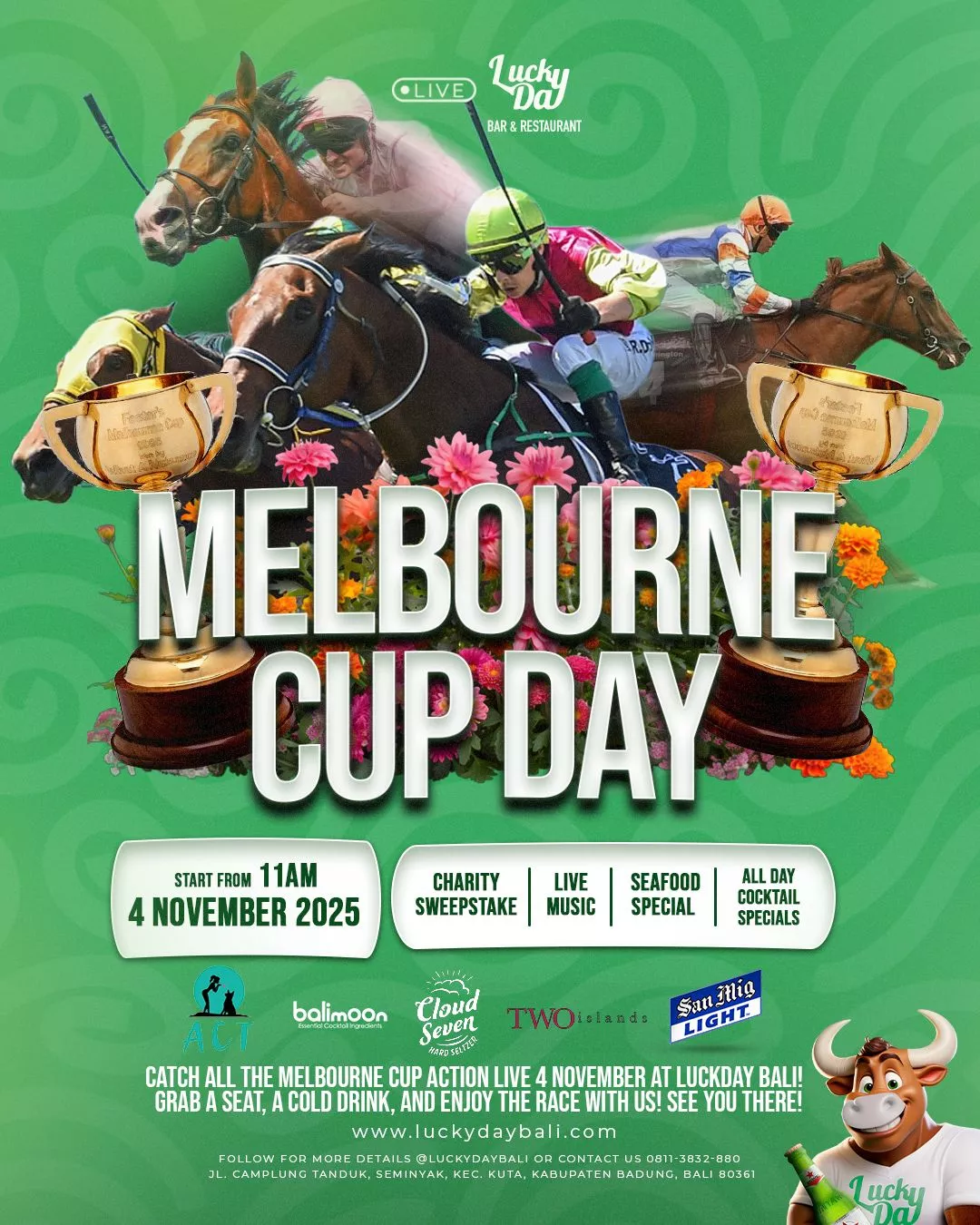 Lucky Day Bar & Restaurant located in Seminyak Bali, just minutes from Double Six Beach, is an Australian run, family friendly venue with something for everyone!