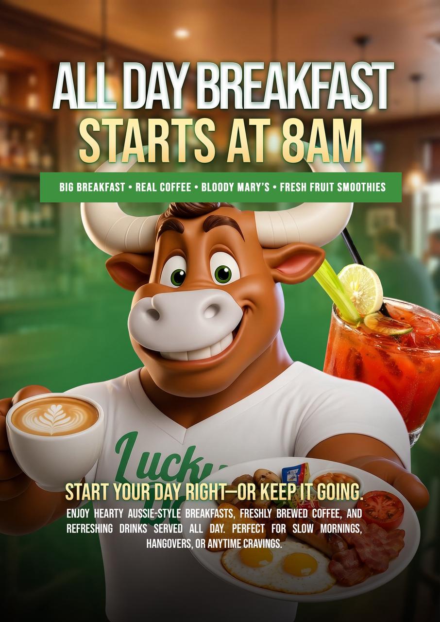 Open from 8:30 am Daily serving Breakfast, Lunch, and Dinner with our all-day kitchen! All your sports needs are covered with our two HUGE Projector Screens and surrounding HD screens means you won't miss a minute of the action!